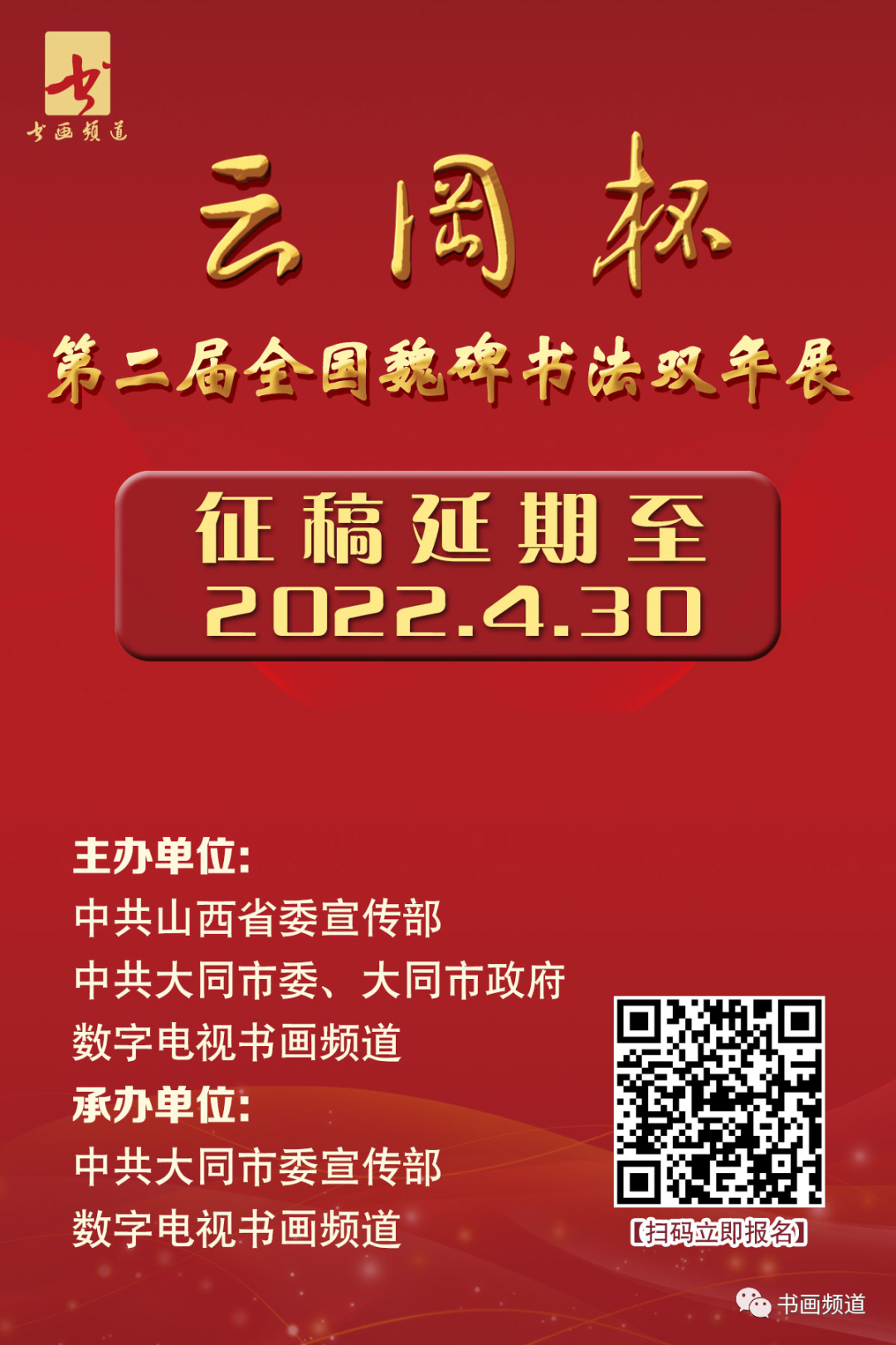 由于近期全國疫情多點(diǎn)并發(fā),根據(jù)國家相關(guān)部門對疫情防控的要求,切實(shí)做好疫情防控工作,“云岡杯”第二屆全國魏碑書法雙年展組委會(huì)研究決定,將原定于2022年3月31日的征稿截止日期延期至4月30日。評選及相關(guān)活動(dòng)時(shí)間也相應(yīng)延期為:初評時(shí)間2022年5月10日;復(fù)評時(shí)間5月30日;半決賽時(shí)間7月8日;決賽時(shí)間7月9日;總決賽及頒獎(jiǎng)晚會(huì)時(shí)間7月10日。此次雙年展投稿方式和投稿要求不變。