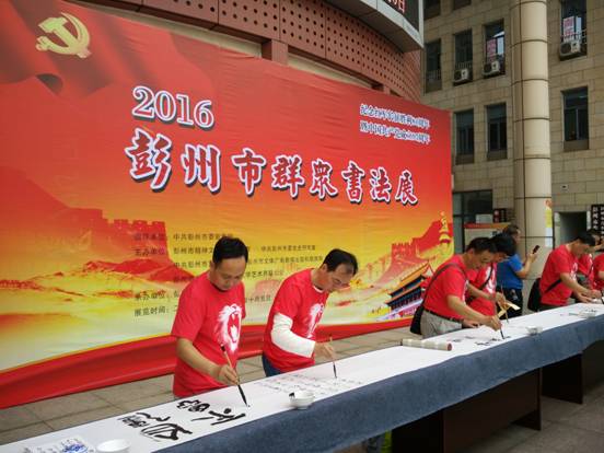 展覽當(dāng)天,主辦方還組織了20名獲獎作者現(xiàn)場揮毫潑墨創(chuàng)作出以“歌頌祖國、振興中華”為主要內(nèi)容的25米巨幅長卷,同時并對《2016彭州市群眾書法展作品集》進(jìn)行了贈發(fā)。(文/圖 吳文東)