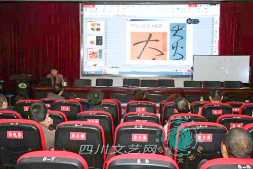 10月13日下午,廣漢市文聯(lián)邀請中國書協(xié)行業(yè)建設(shè)委員會委員、四川省書協(xié)副主席林嶠舉辦“懷素草書字法學(xué)習(xí)與研究”書法講座。林嶠老師結(jié)合篆隸書、漢簡的字法衍變就懷素草書《自敘貼》的字法作了細(xì)致精彩的解析。