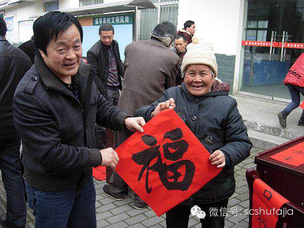 這是一場(chǎng)別開(kāi)生面的文化惠民活動(dòng)。寫(xiě)春聯(lián),送福字是綿竹市書(shū)協(xié)多年來(lái)堅(jiān)持的一項(xiàng)群眾文化活動(dòng)內(nèi)容,書(shū)法家們用手中的筆墨表達(dá)了對(duì)全鎮(zhèn)人民的深深祝福。廣場(chǎng)上人來(lái)人往,好不熱鬧。 “丁老師,請(qǐng)幫我寫(xiě)幅春聯(lián)。”“老師,請(qǐng)你再幫我寫(xiě)幅堂屋門(mén)的春聯(lián)。”“老師,請(qǐng)你也幫我寫(xiě)個(gè)‘福’字”……書(shū)寫(xiě)現(xiàn)場(chǎng),綿竹市的20多位書(shū)法家們與書(shū)協(xié)主席丁小虎一起,忙不停的為廣大群眾書(shū)寫(xiě)春聯(lián)和“福”字。鐘大伯雙手手捧所送的大紅“福”字和對(duì)聯(lián),激動(dòng)地說(shuō):“書(shū)法家們真好,連對(duì)聯(lián)和福字也給我們送到家門(mén)口了!“
