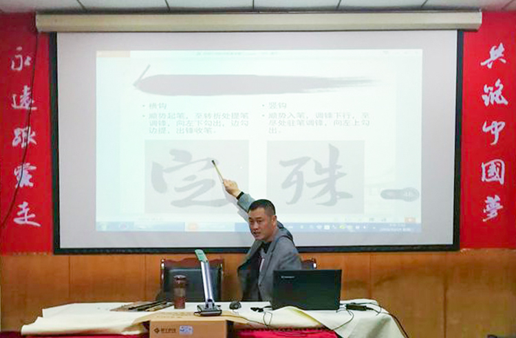 10月24日晚6:30~8:30,遂寧市書協(xié)與市第一人民醫(yī)院聯(lián)辦的書法培訓班的第18堂課在醫(yī)院9樓會議室開課。醫(yī)院工會主席郝維華,院辦(黨辦、人事)主任楊利,書法愛好者、班委等共20余人參加培訓。 主講老師:趙虎 課程內(nèi)容:米芾行書《苕溪詩帖》之基本筆畫。
