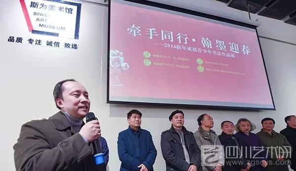 成都市青少年宮書法部副部長王驥在開幕式上致辭
