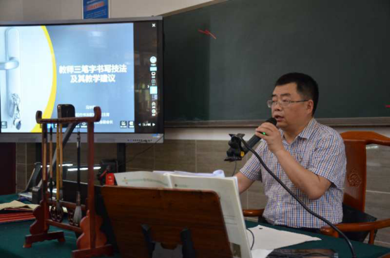 活動(dòng)中,馮學(xué)敏副主席針對(duì)當(dāng)下師生書寫現(xiàn)狀,作了題為“教師三筆字書法技法及其教學(xué)建議”的專題講座。他從基本筆畫和規(guī)則、楷書古帖選用和臨寫方法、行書古帖和臨寫方法、小學(xué)生古帖選用和臨寫方法等四個(gè)方面進(jìn)行了講解和示范。通過(guò)觀察老師們書寫自己姓名,實(shí)實(shí)在在指導(dǎo)了三筆字的書寫用筆要領(lǐng)與運(yùn)筆技巧,他從指導(dǎo)小學(xué)生書寫視角,特別推薦了鐘繇的《宣示表》,王羲之的《樂(lè)毅論》,鐘紹京的《靈飛經(jīng)》,介紹了這些古帖對(duì)師生寫字的意義和要領(lǐng)。同時(shí)對(duì)行書古帖選用和臨寫方法也做了介紹,他在講解《蘭亭序》《祭侄文稿》《寒食帖》特點(diǎn)的同時(shí),還引導(dǎo)大家思考如何教學(xué)生臨寫的技巧。他從形象、神采、氣質(zhì)標(biāo)準(zhǔn)說(shuō)起,強(qiáng)調(diào)小學(xué)生的書寫指導(dǎo)要從“趣“入手,善于激發(fā)熱情;以“指導(dǎo)”為保障,促使學(xué)生養(yǎng)成良好的書寫習(xí)慣。他語(yǔ)重心長(zhǎng)告誡大家:“學(xué)為人師,行為世范;勤學(xué)苦練,堅(jiān)守百天;興趣為先,師古善變;傳承經(jīng)典,責(zé)無(wú)旁貸!” 爾后,學(xué)校老師或用鋼筆、或用毛筆進(jìn)行了臨帖練習(xí),馮學(xué)敏副主席、羅晶寶副秘書長(zhǎng)走近老師,細(xì)致觀察、貼心指導(dǎo),幫助老師找到書寫癥結(jié),給予巧妙精準(zhǔn)的書寫指導(dǎo)。整個(gè)講座過(guò)程,書法家精心講解、傾情示范、耐心指導(dǎo),大家感覺(jué)充實(shí)有趣,氣氛熱烈,互幫互學(xué),受益匪淺?;顒?dòng)后,市書協(xié)與學(xué)校就在學(xué)校建立教學(xué)基地事宜進(jìn)行了商討,達(dá)成了共識(shí)。希望共同攜手,把德陽(yáng)外國(guó)語(yǔ)學(xué)校建設(shè)成為市區(qū)書法教學(xué)的示范基地,定期組織教師書法培訓(xùn)活動(dòng),努力提升廣大教師書法教學(xué)水平,為弘揚(yáng)中華優(yōu)秀傳統(tǒng)文化貢獻(xiàn)綿薄之力。(德陽(yáng)市書法家協(xié)會(huì) 文:羅晶寶 李緒軍 圖:李嗣德 羅晶寶 )