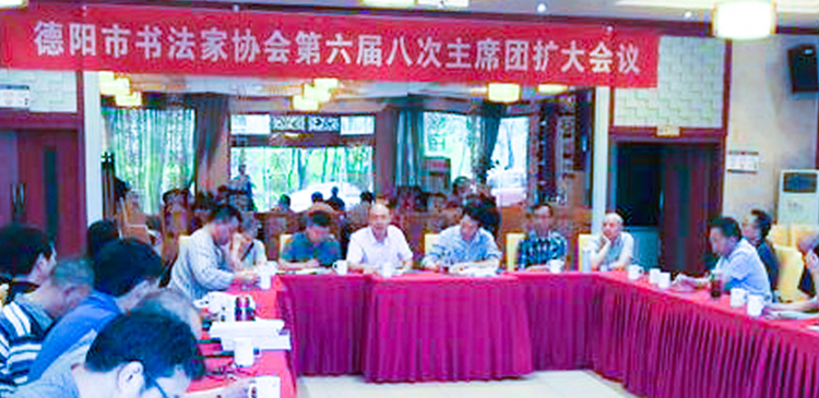 四川書法家網(wǎng)訊 6月19日上午,德陽(yáng)市書法家協(xié)會(huì)第六屆八次主席團(tuán)(擴(kuò)大)會(huì)議在德陽(yáng)召開(kāi)。市書協(xié)主席團(tuán)成員及各縣(市、區(qū))書協(xié)主席、秘書長(zhǎng)、部分會(huì)員代表參加會(huì)議。 市書協(xié)常務(wù)副主席兼秘書長(zhǎng)李嗣德主持會(huì)議。