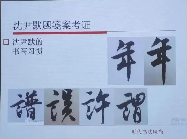 接著,王老師為大家介紹了沈尹默、潘伯鷹、白蕉等近代帖學(xué)名家的作品,并從學(xué)術(shù)考證的角度為大家分析沈尹默題簽案。