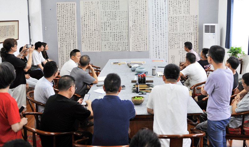 為傳承弘揚中華民族優(yōu)秀傳統(tǒng)文化,落實習(xí)主席關(guān)于文藝事業(yè)的要求,金堂書協(xié)鑒于今年下半年四川書協(xié)、中國書協(xié)即將舉辦的多項展覽,同時,為提升“云頂問道•書法沙龍”全體學(xué)員的整體書法創(chuàng)作水平。8月7日,“云頂問道•書法沙龍”、金堂書協(xié)、金堂文化館邀請到四川省書法家協(xié)會副主席、行草書委員會主任、綿陽市書協(xié)主席龔小臏和綿陽市書協(xié)副主席雷清到金堂與會員們進行了親切而深入的書法交流指導(dǎo)。