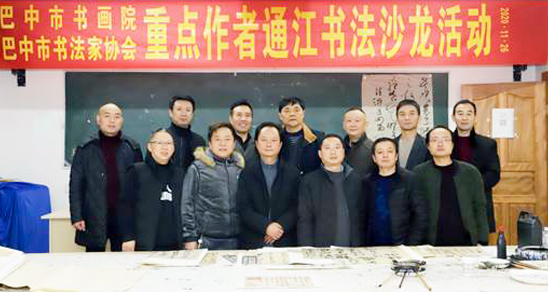 11 月26 日下午,巴中市書(shū)法家協(xié)會(huì)主席張巨強(qiáng)帶領(lǐng)市書(shū)協(xié)4位副主席,深入到通江縣書(shū)協(xié),在通江縣美術(shù)館(書(shū)畫(huà)院)參加巴中市書(shū)協(xié)書(shū)法重點(diǎn)作者通江書(shū)法沙龍活動(dòng)。
