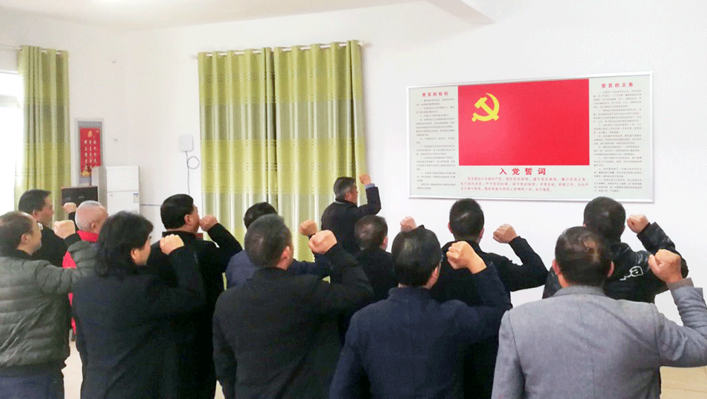 “我志愿加入中國共產(chǎn)黨,擁護黨的綱領(lǐng),遵守黨的章程......”,文明新村村委黨員活動室里,由廣安市書法家協(xié)會黨支部書記、廣安市書法家協(xié)會主席蒲青春領(lǐng)誓,黨員干部和協(xié)會入黨積極分子重溫了入黨誓詞,踐行初心使命。隨后,聽取了鎮(zhèn)村干部對脫貧攻堅的成果匯報并肯定了他們的基層工作。