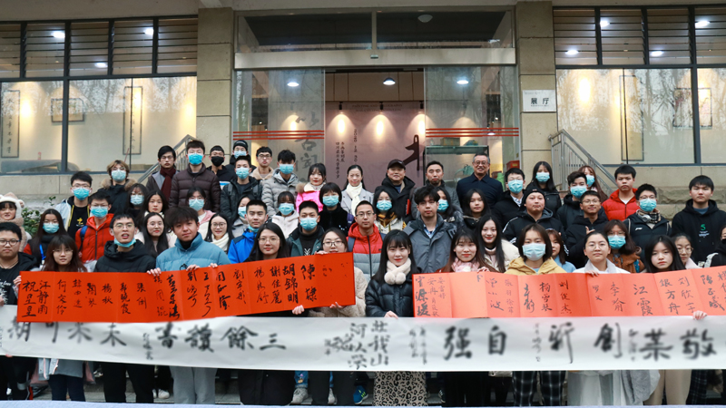 會長何厚明同學介紹到,本次展覽是對協(xié)會在三十余載風雨磨礪中取得階段性成果的集中反映,可以說是四川農(nóng)業(yè)大學書畫協(xié)會成立以來舉辦規(guī)格最高的一次,共展出協(xié)會珍藏的軟筆書法、硬筆書法、國畫、篆刻等作品80余幅。本次展覽也意味頗豐、亮點紛呈。一是展出作品的水平高,除特邀的書畫藝術(shù)家作品外協(xié)會成員的每一件的作品均經(jīng)過反復(fù)琢磨,不少作品已達到省級乃至國家級展覽的水平。二是展出作品的風格多,篆隸楷行草五中書體均有涉及,每一種書體的不同風格也均有體現(xiàn)。此外,小品作品、八尺巨作的交相輝映,每一幅作品在章法設(shè)計上的匠心獨運,無不引得參觀者駐足欣賞,稱贊有加。三是展出作品的內(nèi)容真,本次展覽除了在藝術(shù)審美達到了較高的水平,在作品的內(nèi)容方面也是下足了功夫。其中,既有反映協(xié)會成員友情的原創(chuàng)詩詞《翰墨·八仙歌》,又有已經(jīng)畢業(yè)師長通過筆墨抒發(fā)對學校生活真摯的回憶和對后輩真切的寄語;既有反映“川農(nóng)大精神”的文章,又有謳歌脫貧攻堅取得決定性勝利的詩文,正可謂是“百花齊放、百家爭鳴”。同時,展覽還通過設(shè)置現(xiàn)場體驗環(huán)節(jié),讓廣大同學在欣賞高水平展覽中感受中國傳統(tǒng)書法繪畫以及篆刻的魅力,通過協(xié)會成員的講解,激發(fā)更多學子對傳統(tǒng)書畫篆刻文化的興趣,推動優(yōu)秀傳統(tǒng)文化的傳承。