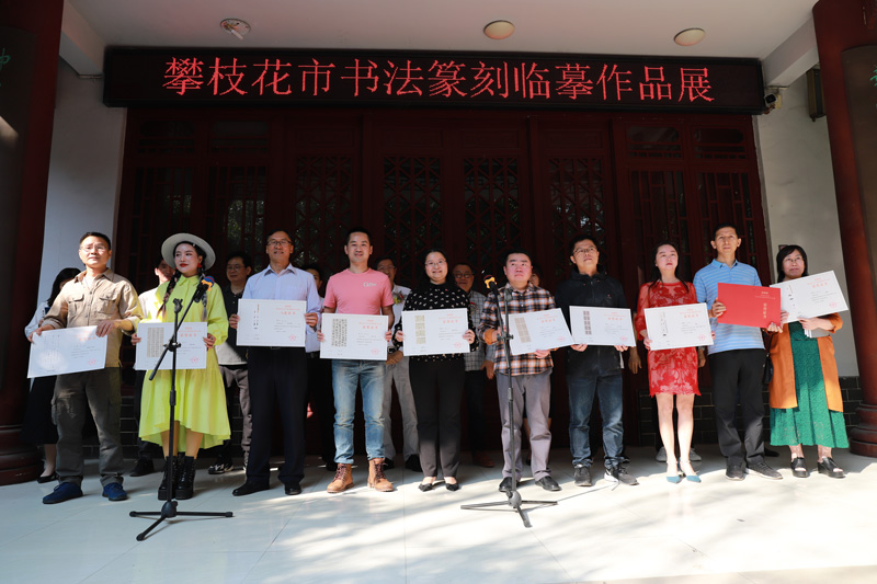 開(kāi)幕式上,向優(yōu)秀作者頒發(fā)了榮譽(yù)證書(shū),張光學(xué)代表作者發(fā)言。(攀枝花書(shū)協(xié))