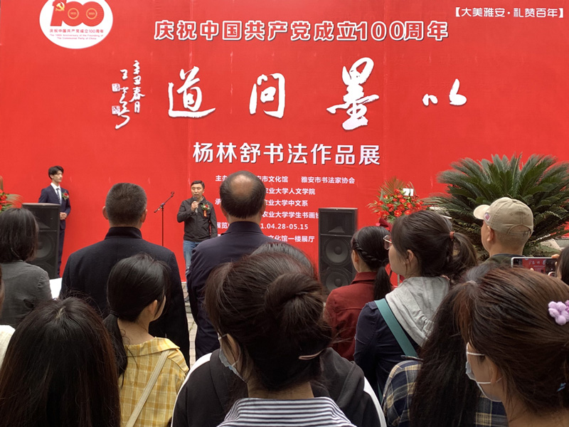 四川書法家網訊 為慶祝中國共產黨成立100周年,4月28日,由雅安市文化館、雅安市書法家協會、四川農業(yè)大學人文學院聯合主辦的“大美雅安•禮贊百年”慶祝中國共產黨成立100周年“以墨問道──楊林舒書法作品展”在雅安市文化館舉辦開幕式。四川農業(yè)大學黨委副書記張強出席開幕式并宣布展覽開幕。四川農業(yè)大學人文學院黨委書記張禧,人文學院黨委副書記楊仕元,中國書法家協會理事、雅安市文聯副主席、雅安市書協主席王堂兵,雅安市文化館副館長宋有宏,雅安市文化館美術部主任何民,雅安市書協副主席楊俊新、王世明等出席開幕式。