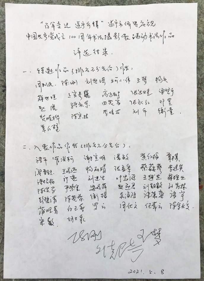 自2021年3月15日開始征稿,至4月30日截稿以來(lái),得到了全市書法作者的大力支持,大家積極創(chuàng)作、踴躍投稿,共收到稿件90件,特邀作品22件。經(jīng)過(guò)四輪評(píng)審,共選出38件入展作品。