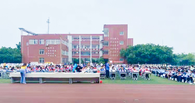 活動(dòng)中,書法家們還現(xiàn)場指導(dǎo)學(xué)生創(chuàng)作書法作品,為師生現(xiàn)場書寫和贈(zèng)送毛筆書法作品50余幅、書簽近300張,活動(dòng)受到了師生們的熱烈歡迎。(德陽市書協(xié)供稿 圖文:李緒軍 顧小勇)