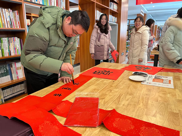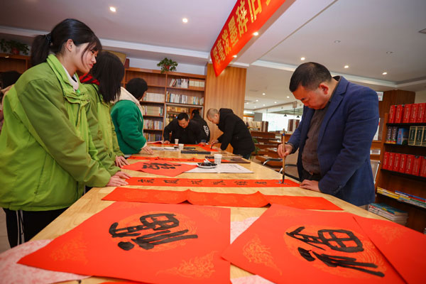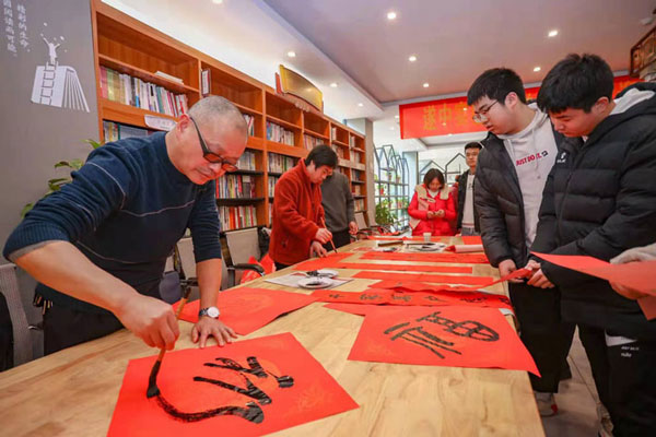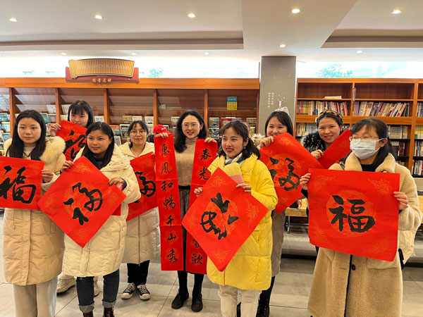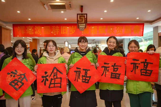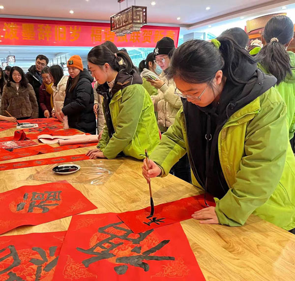 部分師生被現(xiàn)場(chǎng)喜慶的氣氛所感染,向在場(chǎng)的書法家請(qǐng)教并親自書寫春聯(lián)和“福”字,將本次活動(dòng)推向了高潮。