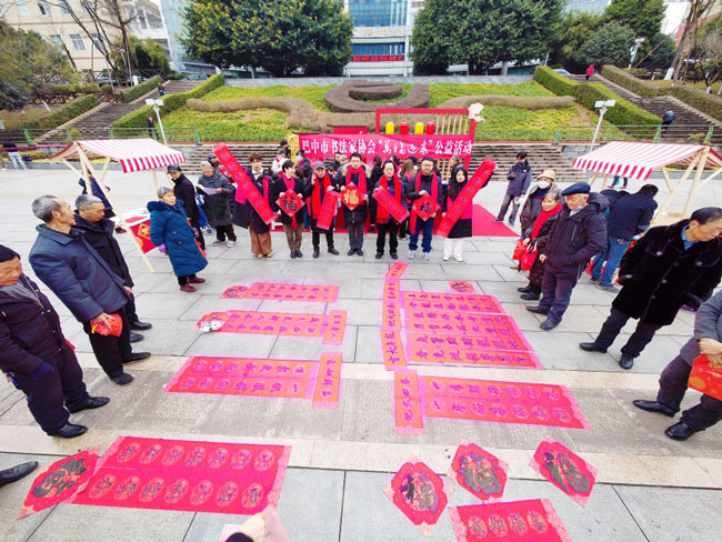 墨香陣陣辭舊歲,書韻濃濃賀新年。寫春聯(lián)、送“福”字是傳統(tǒng)的年俗,火紅的春聯(lián)和大大的“福”字,寄托著人們對(duì)新年新生活的美好期許,也飽含著濃濃的年味。1月25日,巴中市文聯(lián)與巴中市書法家協(xié)會(huì)在巴州區(qū)巴人廣場(chǎng)和新天地廣場(chǎng)開展“萬福迎春”寫春聯(lián)送“福”公益活動(dòng),為廣大市民送上新春美好的祝福。