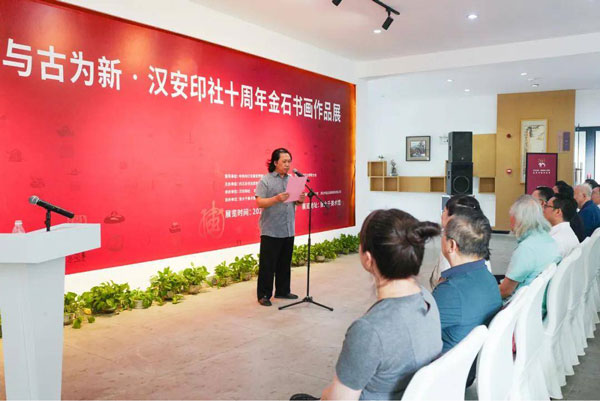 漢安印社成立十年來,積極研究印學(xué),遞火傳薪,在弘揚(yáng)中華優(yōu)秀文化等方面做出了積極的貢獻(xiàn)。希望漢安印社在今后的發(fā)展道路上,進(jìn)一步加強(qiáng)學(xué)術(shù)研究,進(jìn)一步提升藝術(shù)創(chuàng)作能力,挖掘和培養(yǎng)更多的金石篆刻新人,深化與其他藝術(shù)機(jī)構(gòu)和團(tuán)體的溝通聯(lián)系,為傳承和發(fā)揚(yáng)祖國優(yōu)秀傳統(tǒng)文化發(fā)揮更大作用。