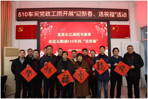2月3日,宜賓長(zhǎng)江畫院院長(zhǎng)曾德宏、副院長(zhǎng)謝光熙、劉芮東、黃賢樞,秘書處涂永隆、朱濤、李強(qiáng)一行,并特別邀請(qǐng)了五糧液集團(tuán)唐燦、吳清泉兩位書畫家一同走進(jìn)五糧液510車間,