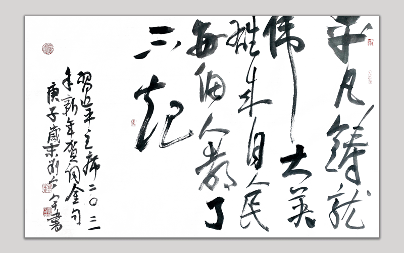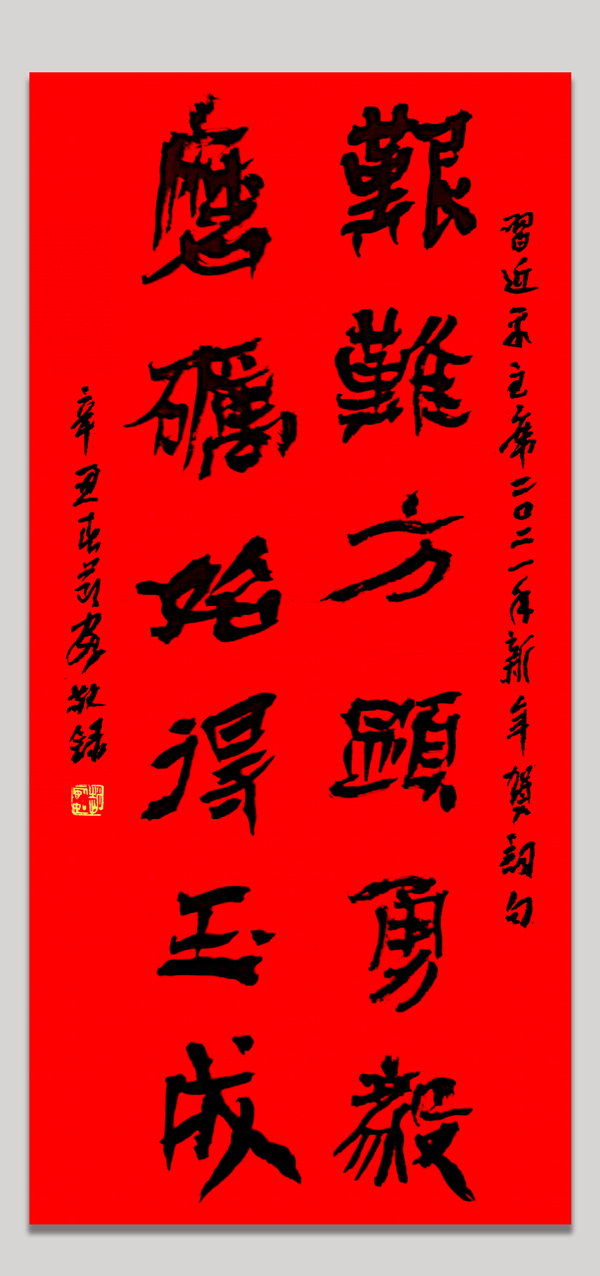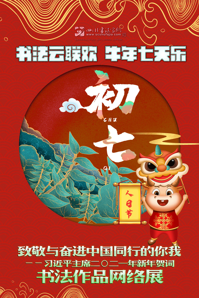 “致敬與奮進(jìn)中國(guó)同行的你我——習(xí)近平主席二〇二一年新年賀詞書法作品網(wǎng)絡(luò)展”書法作品,將在大年初一至初七期間在四川書法家網(wǎng)陸續(xù)展出。愿大家在把盞歡聚、暢敘親情友情時(shí)不忘切磋琢磨,在金牛紫氣和書香墨韻中共迎新年、共賀新春、共創(chuàng)美好明天!