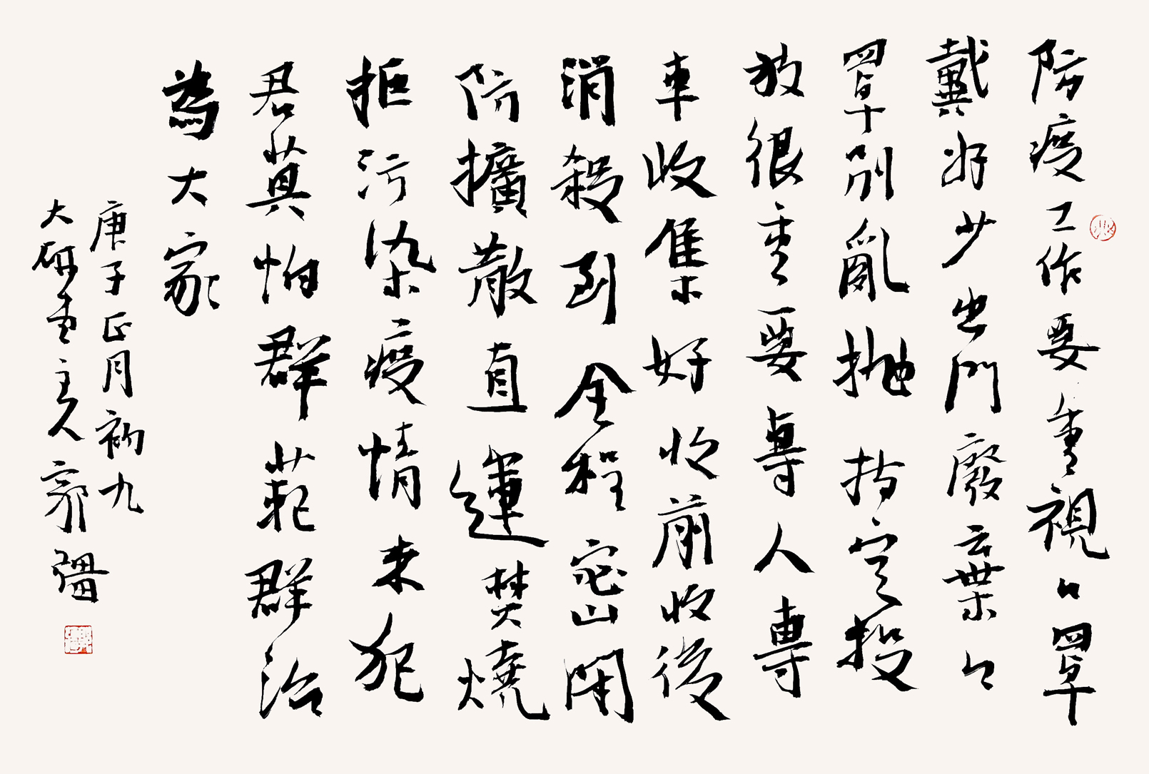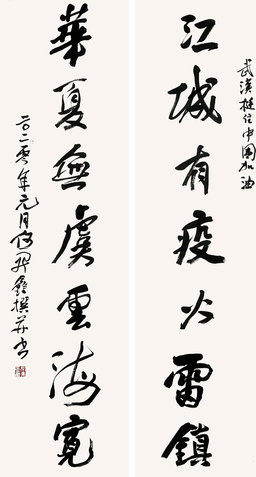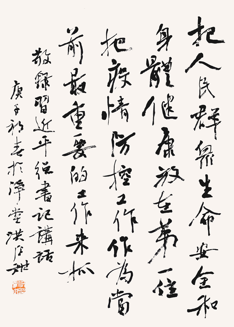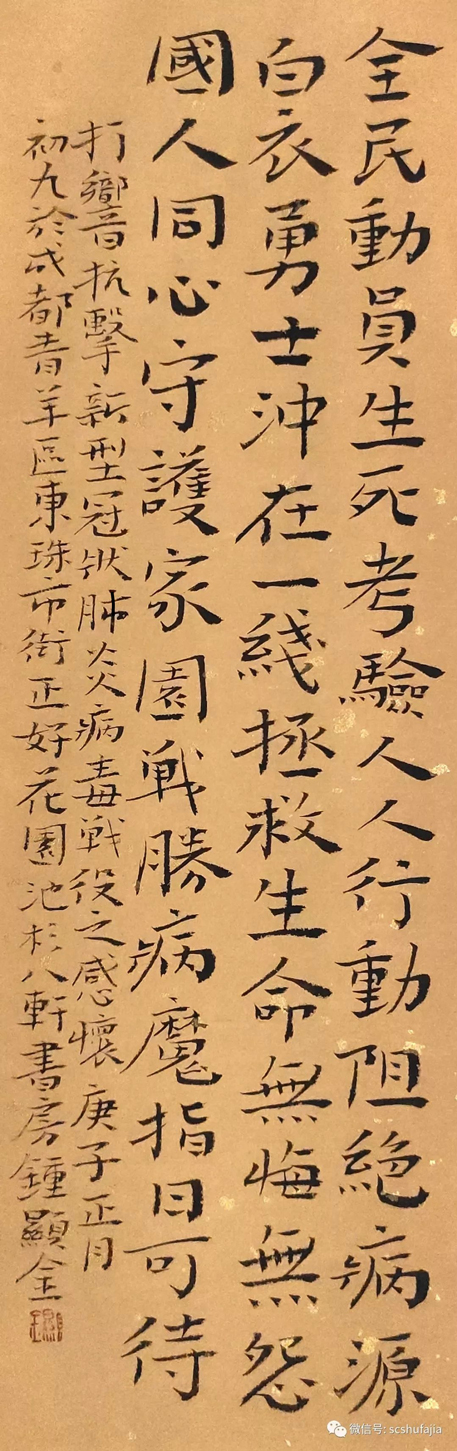值此舉國上下奮力打贏這場疫情防控阻擊戰(zhàn)的關(guān)鍵時刻,四川省書法家協(xié)會迅速行動,倡議全省廣大書法家、書法組織工作者和書法愛好者積極投身到疫情防控工作中,用手中的筆墨加強(qiáng)疫情防控宣傳,創(chuàng)作出鼓舞人民斗志、凝聚人民群眾全面抗擊疫情強(qiáng)大正能量的書法作品,與全國人民一道,在這場抗疫防控阻擊戰(zhàn)中展現(xiàn)出四川書法人的責(zé)任和擔(dān)當(dāng),助力武漢、助力四川、助力全國戰(zhàn)勝疫情,為祖國加油。