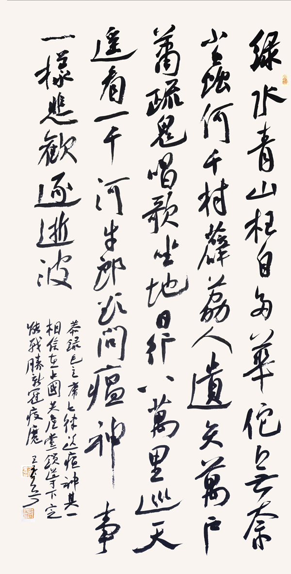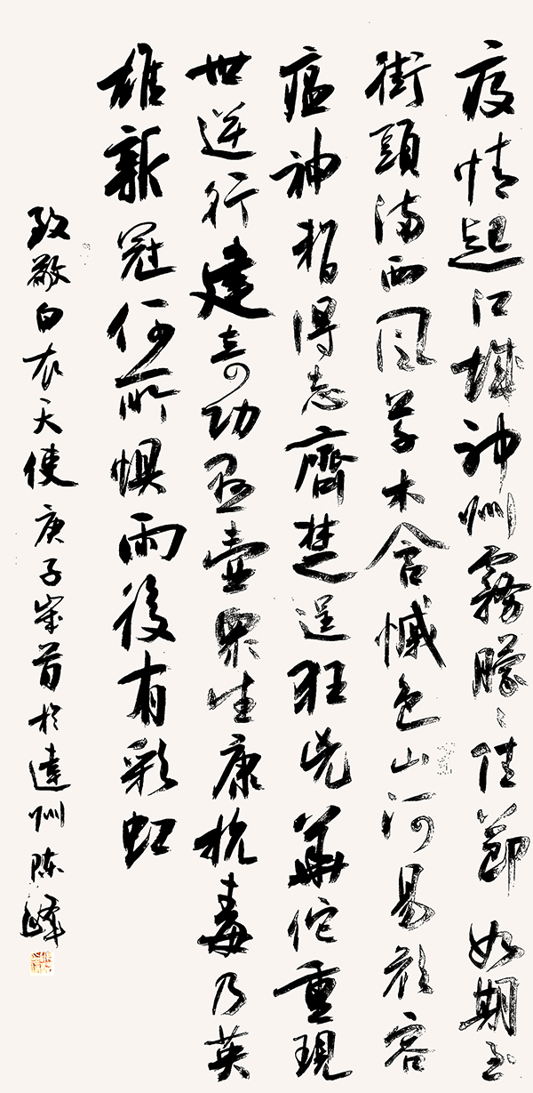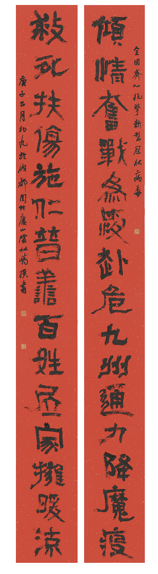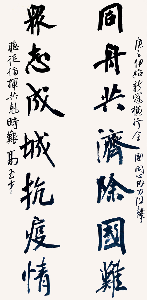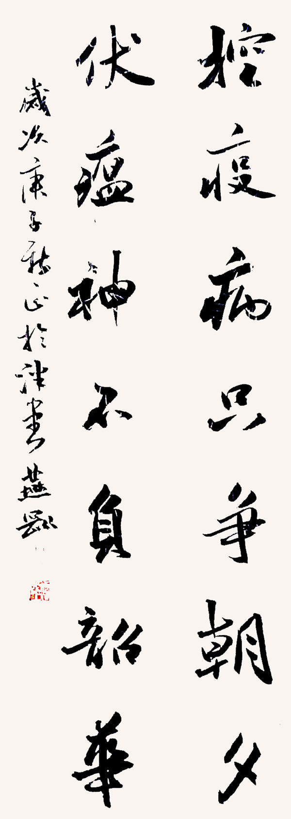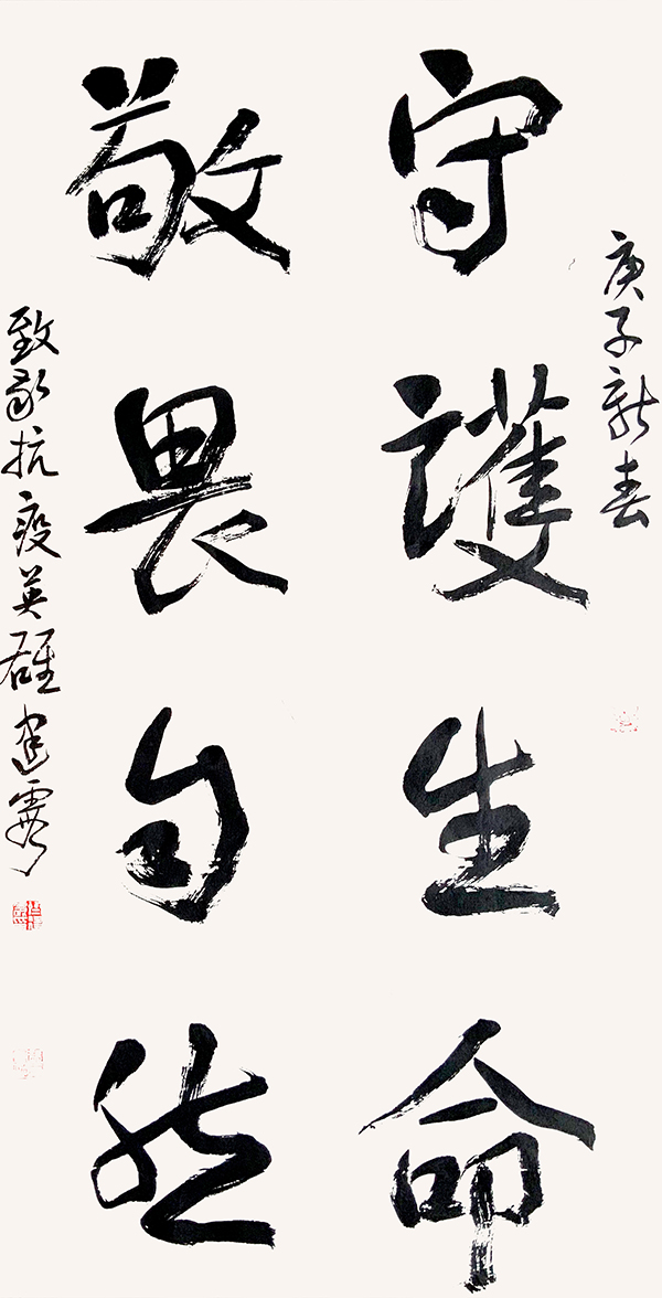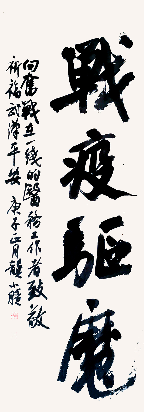 值此舉國上下奮力打贏這場疫情防控阻擊戰(zhàn)的關(guān)鍵時刻,四川省書法家協(xié)會迅速行動,倡議全省廣大書法家、書法組織工作者和書法愛好者積極投身到疫情防控工作中,用手中的筆墨加強疫情防控宣傳,創(chuàng)作出鼓舞人民斗志、凝聚人民群眾全面抗擊疫情強大正能量的書法作品,與全國人民一道,在這場抗疫防控阻擊戰(zhàn)中展現(xiàn)出四川書法人的責(zé)任和擔(dān)當,助力武漢、助力四川、助力全國戰(zhàn)勝疫情,為祖國加油。