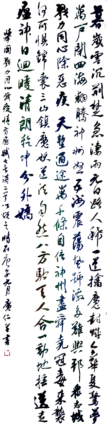 在極短的時(shí)間里,我們獲得了全省書法人的積極響應(yīng),省書協(xié)名譽(yù)主席、顧問、主席團(tuán)成員、各專業(yè)委員會(huì)成員以及部分骨干作者率先以“戮力同心抗擊疫情”為主題進(jìn)行了精心創(chuàng)作。這里我們以網(wǎng)絡(luò)展的形式分批將這些作品奉獻(xiàn)給所有奮戰(zhàn)在抗擊新型冠狀病毒感染的肺炎疫情第一線的勇士們,奉獻(xiàn)給全社會(huì)。我們堅(jiān)信,有中國共產(chǎn)黨的堅(jiān)強(qiáng)領(lǐng)導(dǎo),全國人民戮力同心,眾志成城,完全有信心、有能力打贏這場(chǎng)疫情防控阻擊戰(zhàn)。