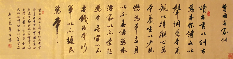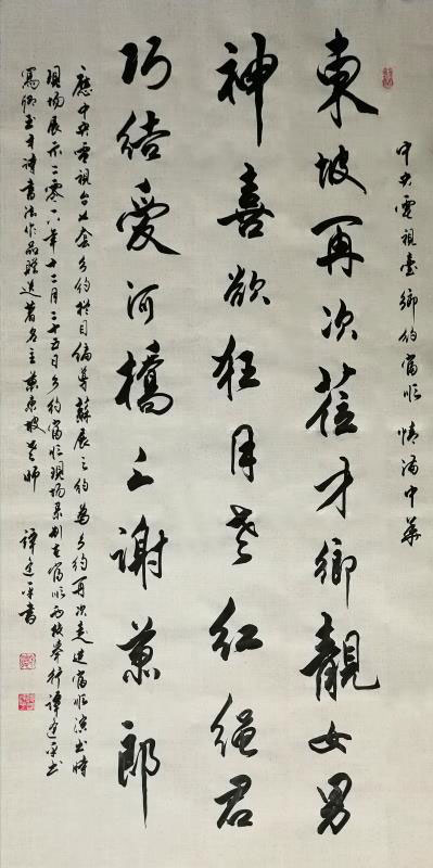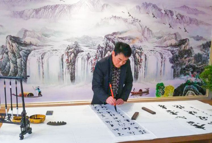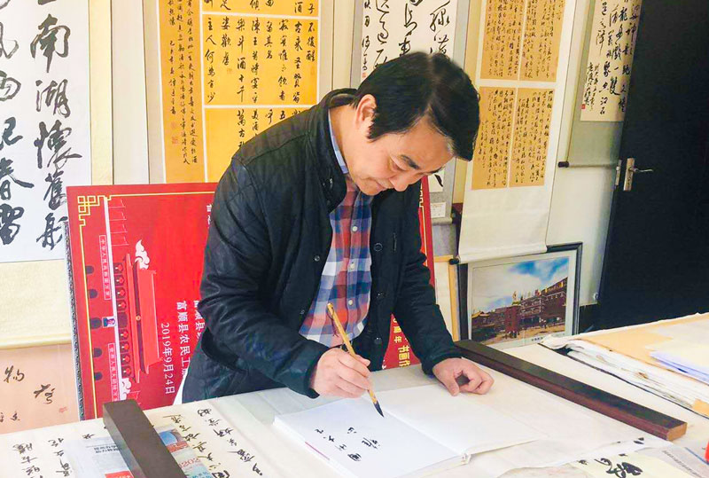 轉業(yè)到地方,譚逢平先后在縣委組織部、縣政府辦公室、縣招商局、縣委宣傳部、縣政協(xié)文史委等部門任過職,直至2017年退休。一般人看來,官員退休便是事業(yè)的終點站,可對譚逢平來說不太適用,它成了新起點。因為,他早就上心、上手了書藝創(chuàng)作,而文化修養(yǎng)、文藝愛好具有與生命同在的長久性,它不受在職不在職的限制,從政的“黃金時代”謝幕,恰好是從藝新征途的序歌。
