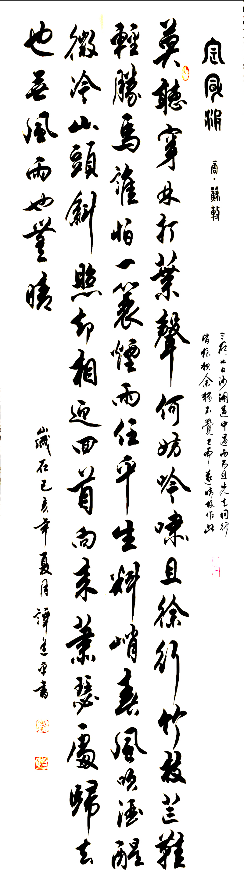 就譚逢平個人而言,他歷經數(shù)十年光陰精練的書藝已達“出手不凡”的佳境,曾有觀賞者見過他書寫的字幅當即贊嘆:“此字卓見‘君子之風’,內蓄豐盈,敦篤俊秀,個人的修養(yǎng),心性的風儀,盡數(shù)折射在筆墨中。”他書寫古人的詩詞,筆意與詩意融合一體,藝境與文境渾然天成,絕非俗手筆可以企及。他博取名家所長,研習過的顏體魏碑、黃自元的書體結構、二王法帖和趙孟頫、陸諫之書帖、手札,結合自身的稟賦注意揚長避短,趨利避害,藏巧于拙,消除了“肥而露肉,肉多少骨”之短,凸顯了“瘦不露骨,肥不露肉”之長,他的筆墨薈萃眾師之精妙,尊規(guī)重矩,神形兼?zhèn)洌Φ厘賱?,風采俊逸,進得去出得來,獨樹于林。