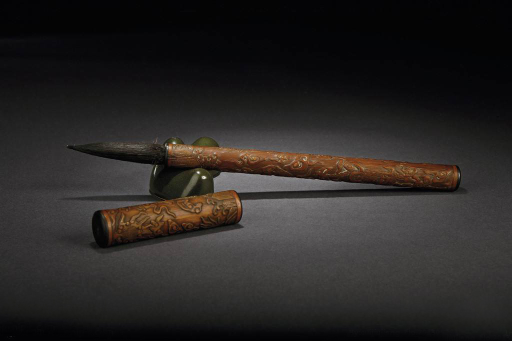 此外,用動物毛制做成的筆,還有鹿毫、麝毫、虎毫、以及鴨毛、鵝毛等,這些筆由于選料極精,造價(jià)較貴。其中有些筆管系用象牙、青玉、犀角、紫檀、琉璃等珍貴材料制成、配以非常考究的裝璜和精美的字畫雕繪,這些稀有之屬,已不切合實(shí)用,而只能作為工藝品以供陳列欣賞了。