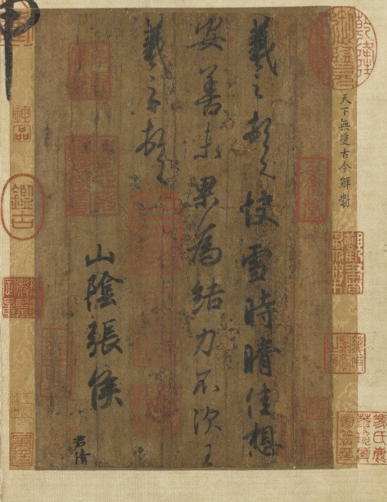 這是一件行楷書(shū)短簡(jiǎn),內(nèi)容是大雪之后向友人問(wèn)候。明代鑒賞家詹景鳳指出,此跡筆法圓勁古雅,意態(tài)閑逸,對(duì)趙孟頫的行書(shū)有很深的影響。從用筆來(lái)看,此帖多圓鈍的用筆,點(diǎn)畫(huà)勾挑都不露鋒,結(jié)體平穩(wěn)勻稱(chēng),在優(yōu)美的姿態(tài)之中,流露出質(zhì)樸內(nèi)斂的意韻。乾隆皇帝極珍愛(ài)此跡,譽(yù)之為“天下無(wú)雙,古今鮮對(duì)”。乾隆十一年,他將此跡與王獻(xiàn)之的《中秋帖》,王珣的《伯遠(yuǎn)帖》合稱(chēng)“三希”,并藏于三希堂中。此帖一般認(rèn)為是唐代精摹本。