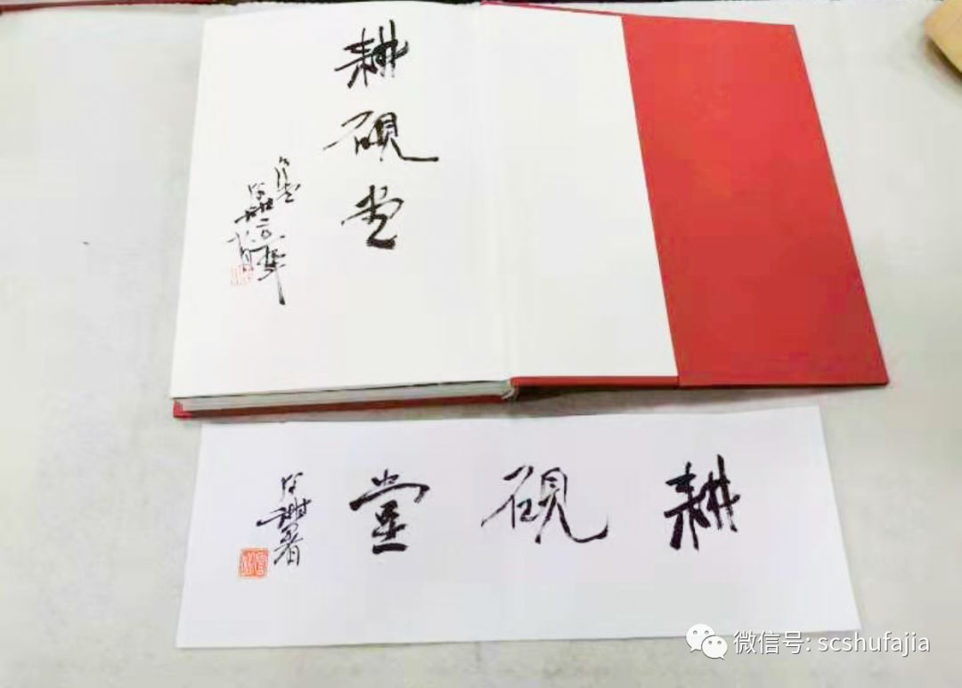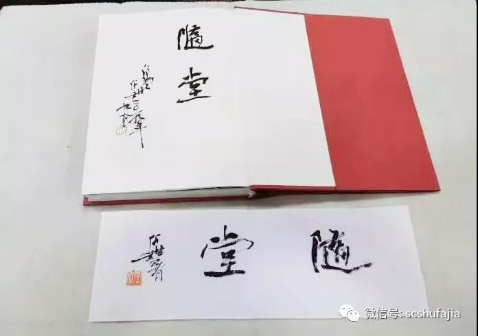 3、作品集+題齋號(hào)吉語(yǔ)本:《凈堂藝跡》題齋號(hào)吉語(yǔ)本(寫在扉頁(yè),齋號(hào)/吉語(yǔ),不超過(guò)五個(gè)字,豎寫)。作者除在圖書上題簽外,還另外附贈(zèng)一張用宣紙題寫的題齋號(hào)吉語(yǔ)小品一幅(35cm*12cm)。(見(jiàn)下圖)