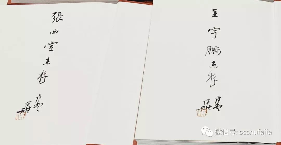 2、作品集簽名本:題寫上款【僅限姓名+某某惠存、某某雅正+作者簽名+鈴印】。(見(jiàn)下圖)