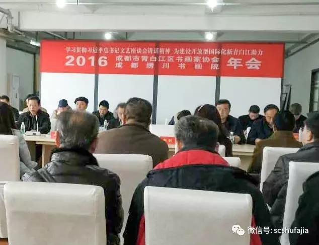 四川書法家網(wǎng)訊 12月31日,2016成都市青白江區(qū)書畫家協(xié)會、成都繡川書畫院年會在巨人樹大廈隆重舉行。四川省書法家協(xié)會副主席徐德松、郭強(qiáng)、鐘顯金,四川省書法家協(xié)會副主席、成都市書法家協(xié)會主席舒炯,成都市文聯(lián)文藝部主任廖蓉,成都市書協(xié)副主席趙安如,成都大學(xué)書法專業(yè)碩士生導(dǎo)師王興國教授,青白江區(qū)政協(xié)副主席吳斌,區(qū)書畫家協(xié)會主席、成都繡川書畫院院長涂忠模,青白江區(qū)委宣傳部、區(qū)文聯(lián)、區(qū)教育局、區(qū)文體廣新旅游局、區(qū)民政局等領(lǐng)導(dǎo)出席年會。