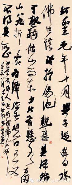 《易》曰:一陰一陽之謂道。書道亦然。一幅好的書法作品,就是將字的大小、斜正,點畫的長短、粗細,用筆的藏露、疾澀,字與字的疏密、映帶,行氣的錯動、擺蕩,墨色的枯濕、濃淡等陰陽關系對比而又統(tǒng)一于一紙,構成一個完美的空間形式。一幅作品蘊含的矛盾越多,其審美意義也越大。各種元素在糾纏攪結中產生上下左右四面發(fā)散的圖式化效果,在紙面上凝固成了宇宙人生神秘莫測的意象比擬,從而具有了形而上的哲學審美意義。