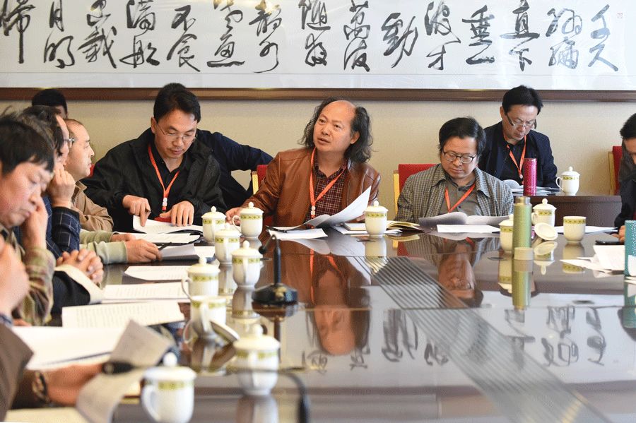 平志英、李兵、劉建剛與省書協(xié)第七屆主席成員合影