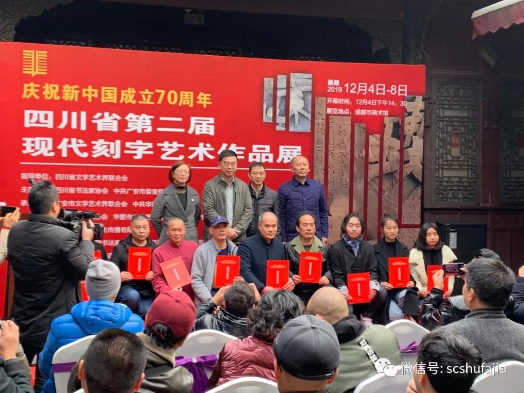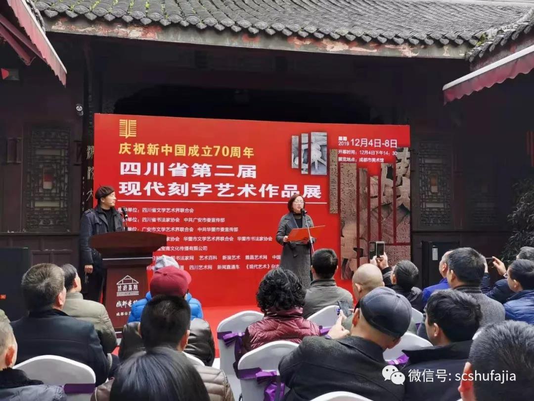四川書法家網(wǎng)訊 為慶祝新中國成立70周年,12月4日,由四川省文聯(lián)指導(dǎo),四川省書法家協(xié)會、中共廣安市委宣傳部主辦,廣安市文聯(lián)、中共華鎣市委宣傳部承辦的“四川省第二屆現(xiàn)代刻字藝術(shù)作品展”在成都畫院·成都市美術(shù)館舉行開幕式。