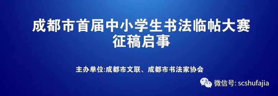 為貫徹落實(shí)習(xí)近平新時(shí)代中國(guó)特色社會(huì)主義文藝思想,大力弘揚(yáng)中華民族文化自信與文化繁榮,促進(jìn)少年兒童對(duì)書法藝術(shù)經(jīng)典的傳承和學(xué)習(xí),廣泛發(fā)掘和培養(yǎng)書法后備人才,決定舉辦的成都市首屆中小學(xué)生臨帖大賽暨成都市首屆中小學(xué)生臨帖大展,通過(guò)“書法臨帖大賽”、“書法臨帖大展”等活動(dòng),以書法為載體,促進(jìn)優(yōu)秀的傳統(tǒng)文化藝術(shù)在少年兒童中的傳承和弘揚(yáng),為實(shí)現(xiàn)中華民族偉大復(fù)興的中國(guó)夢(mèng)儲(chǔ)備藝術(shù)人才。