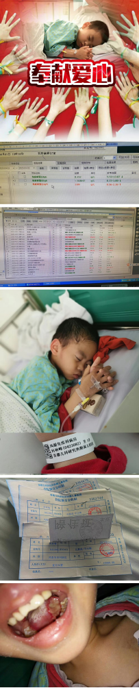 阿峰癥狀是口腔里多處潰瘍、舌側缺損,咽喉部位潰瘍、直腸潰瘍,持續(xù)發(fā)燒已20余天。目前醫(yī)院治療方案為首先控制感染炎癥,不發(fā)燒,然后免疫制劑治療,配型等,最后考慮骨髓移植?,F(xiàn)在每天使用高級抗生素,一天輸4次液,治療費用在3千左右。直到4月20日治療費用已達到10多萬,何燕武花光積蓄后,四處向親友籌借治療費用,每日還要奔波于醫(yī)院和家里。