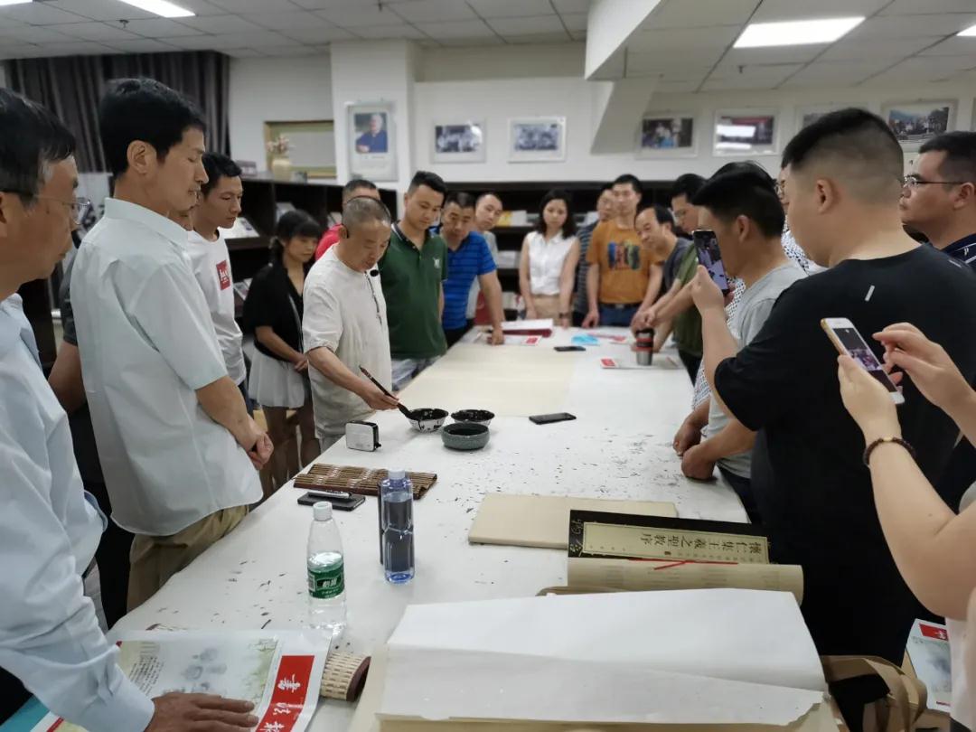 何開鑫現(xiàn)場為會員們示范書法創(chuàng)作