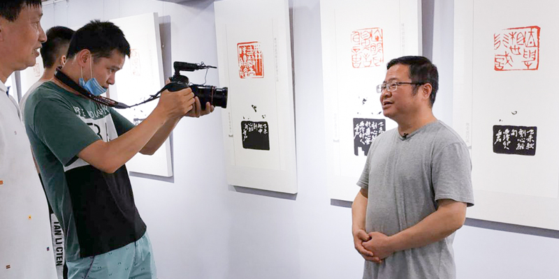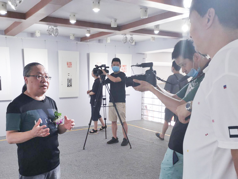郭強在展覽現(xiàn)場接受采訪