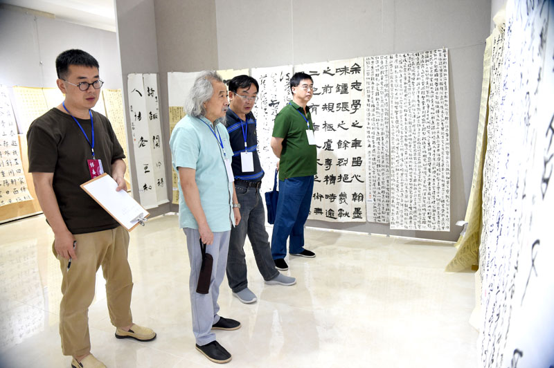 本次評審,十分規(guī)范公正:一是程序科學(xué),借鑒了中書協(xié)的評審規(guī)則;二是安排得當(dāng),主、承辦方將評審和監(jiān)督工作有機結(jié)合,評審過程陽光透明;三是標(biāo)準(zhǔn)統(tǒng)一,以藝術(shù)、學(xué)術(shù)為標(biāo)準(zhǔn)審定投稿作品,體現(xiàn)了對藝術(shù)的嚴(yán)肅性;四是寬嚴(yán)合度,因為90歲以上的老先生有十余位,將他們的作品作為特邀作品,尊重了老先生們對藝術(shù)的熱情。同時,復(fù)查、審核小組慧眼識珠,避免了遺珠之憾。
