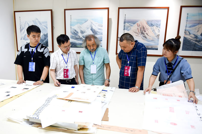 四川書法家網(wǎng)訊 7月13日,倍受全川各界人士和書法作者關(guān)注的“四川省首屆老年書法篆刻作品展”評審工作在成都福寶美術(shù)館(新館)拉開帷幕。從8:30至21:00,經(jīng)過一天緊張、有序的評審,評審委員會的11名評委在12名監(jiān)審維權(quán)小組成員的全程監(jiān)督見證和優(yōu)秀志愿者團隊的協(xié)助下,經(jīng)過初評、初評復(fù)查審核、文本和文字審讀、復(fù)評、終評五個環(huán)節(jié),從2077件有效來稿中,評選出了32件優(yōu)秀作品、147件入展作品、80件入選作品。
