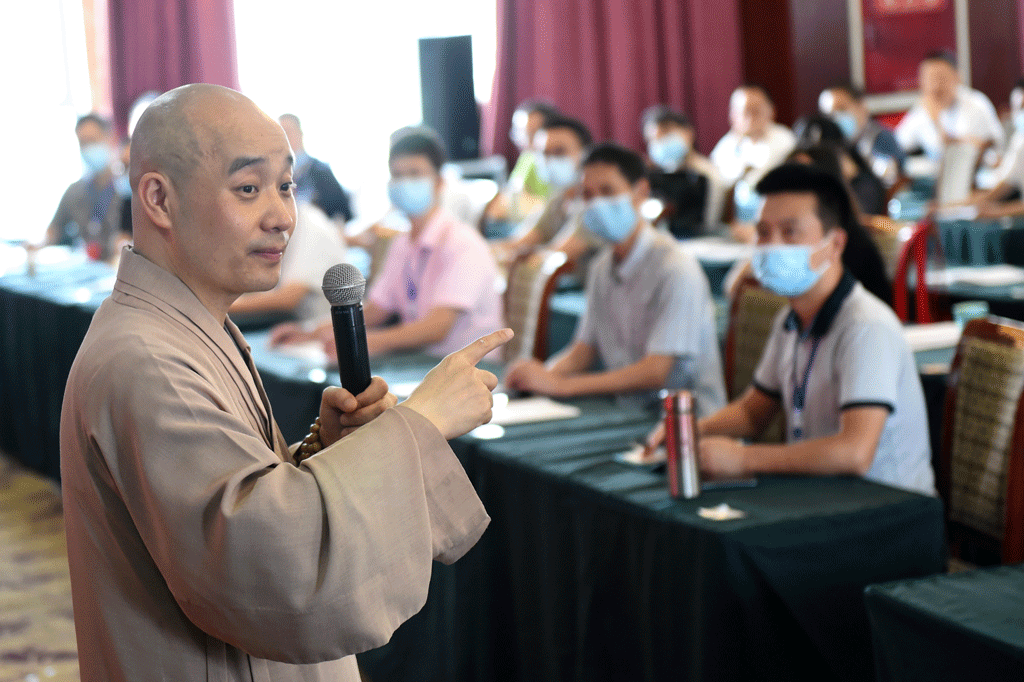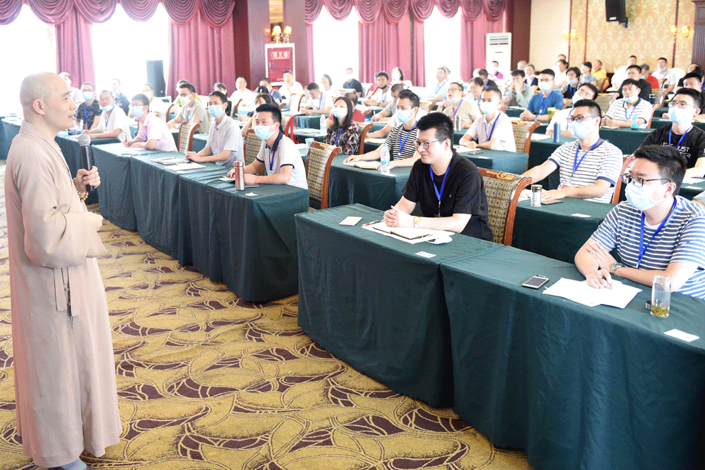 接著,宗性法師進(jìn)入“巴蜀禪宗文化”講解。首先,宗性法師從“怎么看?是什么?”的角度生動(dòng)有趣地揭示自秦漢以來(lái)的四川人文精神以及蜀學(xué)的生發(fā)對(duì)中華大一統(tǒng)文化生發(fā)的重要貢獻(xiàn)及其歷史地位,揭示了蜀文化的思想內(nèi)質(zhì)及精神彰顯的開(kāi)放與融匯絕非現(xiàn)代人所說(shuō)的“盆地意識(shí)”。其次,他講解禪與蜀的關(guān)系,由“言禪者,不可不知蜀;言蜀者,不可不知禪”,說(shuō)明巴蜀禪宗文化在中國(guó)禪宗文化中的重要地位。再次,他從“禪數(shù)”、“禪觀”、“禪悟”三個(gè)方面闡釋“什么是禪”,指出修行最重要的是“心性”,通過(guò)“漸悟"或"頓悟”而"明心見(jiàn)性”并體驗(yàn)禪是智慧,禪是生活,禪是藝術(shù)。