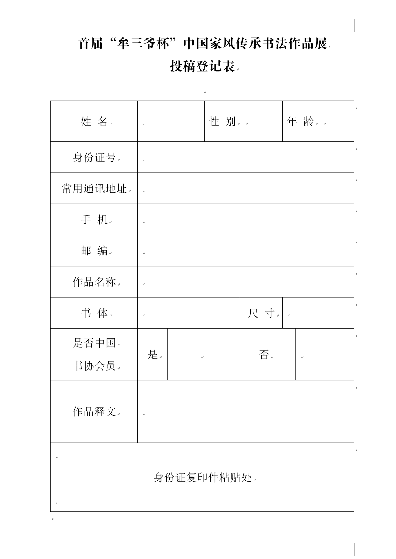 附:首屆“牟三爺杯”中國家風(fēng)傳承書法作品展投稿登記表