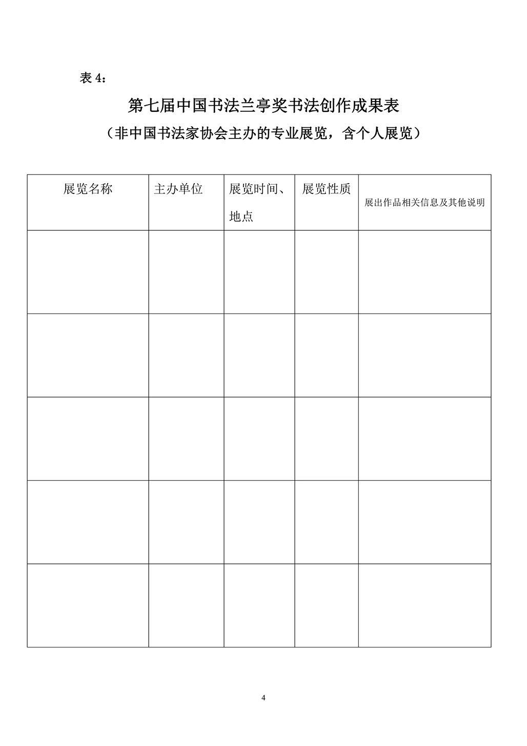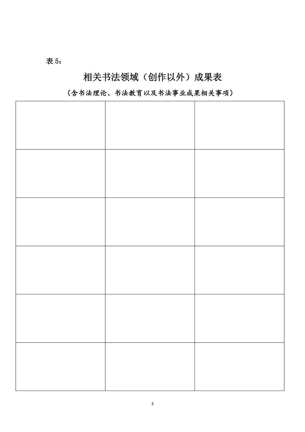 ③理論投稿作者須填寫《參評(píng)著作、論文信息表》《書法理論成果表(中國(guó)書法家協(xié)會(huì)主辦的論壇、討論會(huì)等)》《書法理論成果表(非中國(guó)書法家協(xié)會(huì)主辦的論壇、討論會(huì)等)》《相關(guān)書法領(lǐng)域(書法理論以外)成果表》。