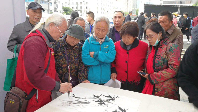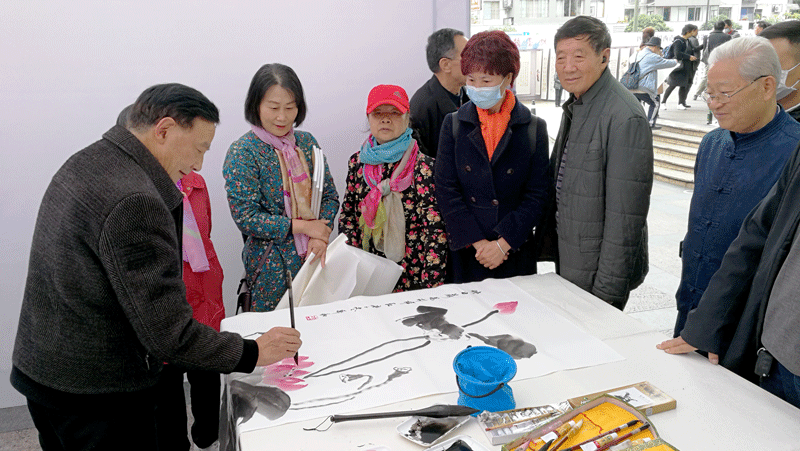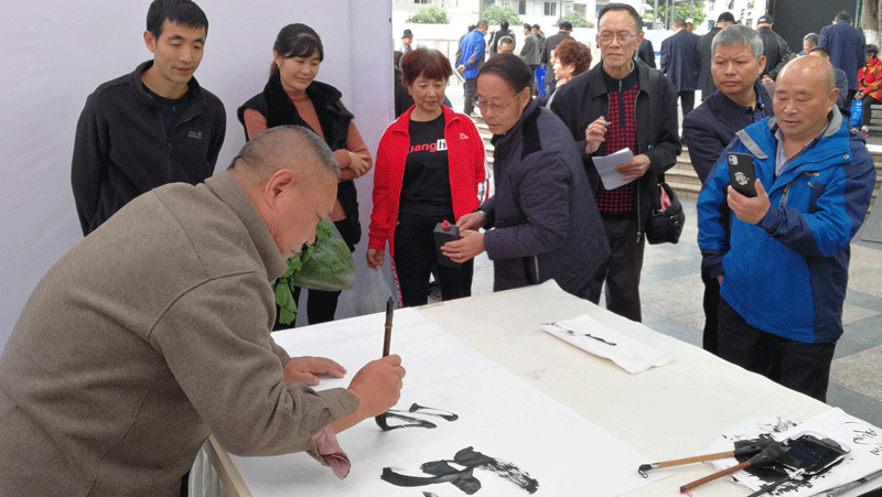 藝術(shù)家們向新都群眾現(xiàn)場(chǎng)贈(zèng)送書(shū)畫(huà)作品