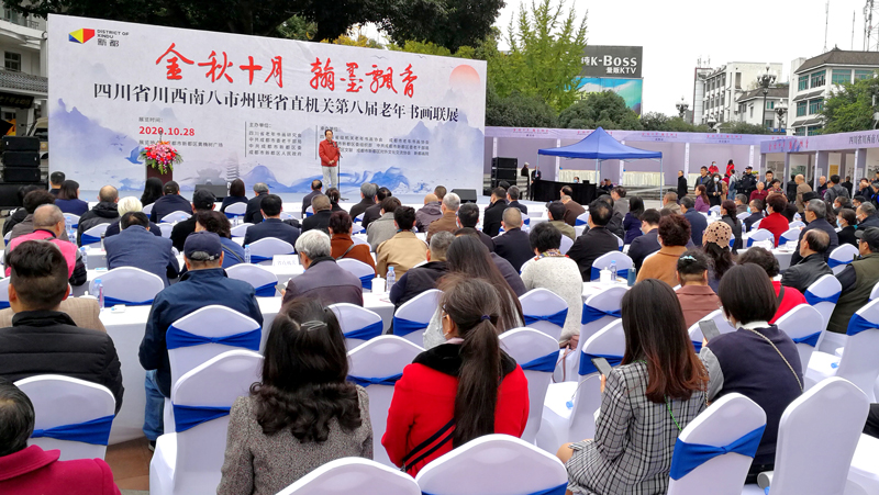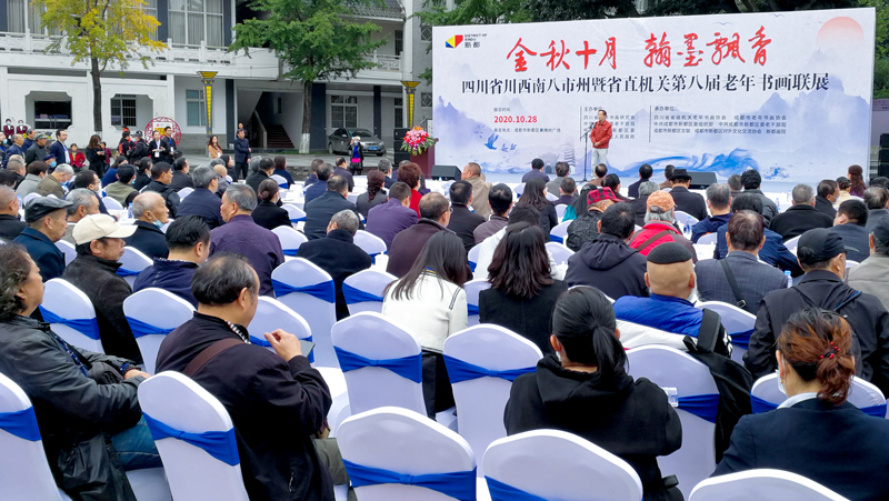 四川書(shū)法家網(wǎng)訊 “金秋十月,翰墨飄香”。10月28日,由四川省老年書(shū)畫(huà)研究會(huì)、中共成都市委老干部局、中共成都市新都區(qū)委、成都市新都區(qū)人民政府主辦,四川省省級(jí)機(jī)關(guān)老年書(shū)畫(huà)協(xié)會(huì)、成都市老年書(shū)畫(huà)協(xié)會(huì)、中共成都市新都區(qū)委組織部、中共成都市新都區(qū)委老干部局、成都市新都區(qū)對(duì)外文化交流協(xié)會(huì)和新都畫(huà)院承辦的“四川省川西南八市州暨省直機(jī)關(guān)第八屆老年書(shū)畫(huà)聯(lián)展”,在具有悠久歷史和優(yōu)秀傳統(tǒng)文化的新都區(qū)隆重舉辦。