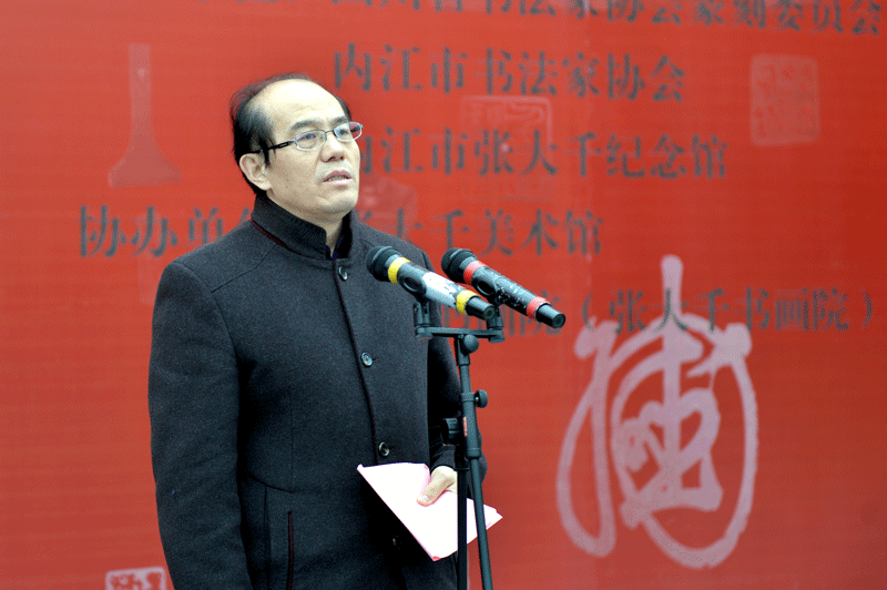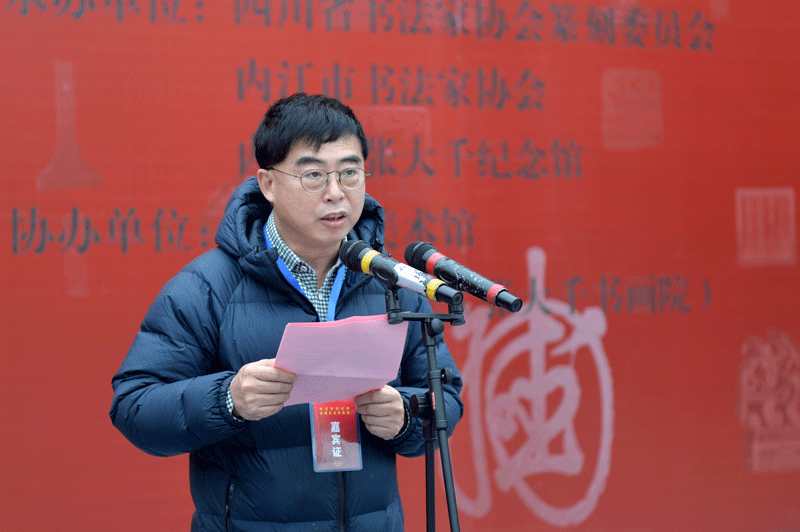 戴躍受省文聯(lián)黨組書記、常務(wù)副主席平志英同志和副書記劉建剛同志的委托,代表四川省文聯(lián)及四川省書法家協(xié)會(huì)向到會(huì)嘉賓表示熱烈的歡迎,對(duì)支持和承辦、協(xié)辦該屆展覽的全體單位和個(gè)人所付出的辛勤勞動(dòng)表示衷心的感謝并致以崇高的敬意。