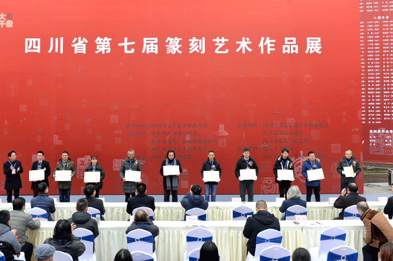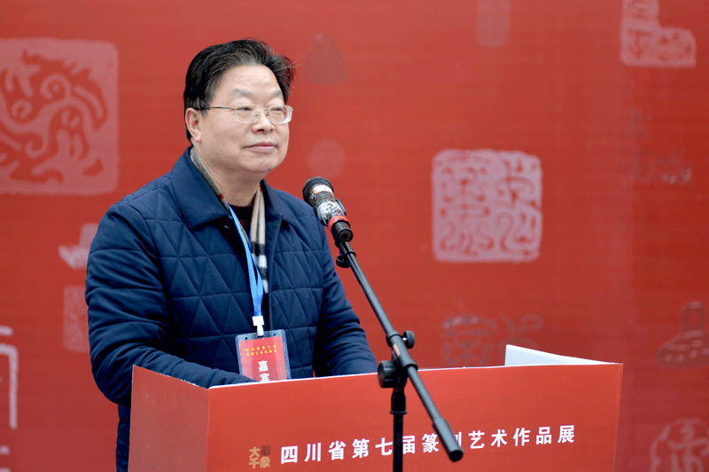 四川省書法家協(xié)會(huì)副主席王道義宣讀《四川省書法家協(xié)會(huì)關(guān)于“四川省第七屆篆刻藝術(shù)作品展”優(yōu)秀作品作者的表彰決定》和名單