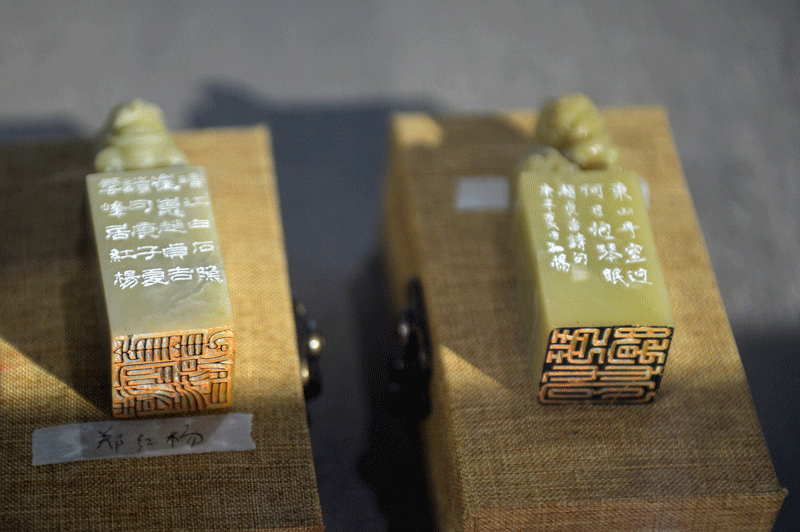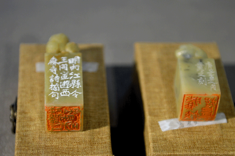 據(jù)悉,內(nèi)江市收藏的齊白石1936年做客四川時(shí)為競(jìng)寰將軍所刊《崔子玉座右銘》篆刻原石12枚也在開幕式當(dāng)天上午展出。這批印章為壽山、青田等石質(zhì),其中4枚為朱文,8枚為陰文。