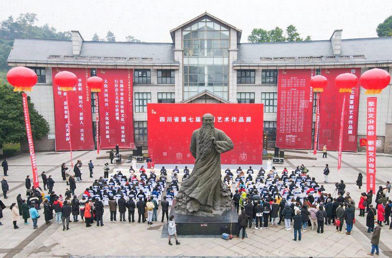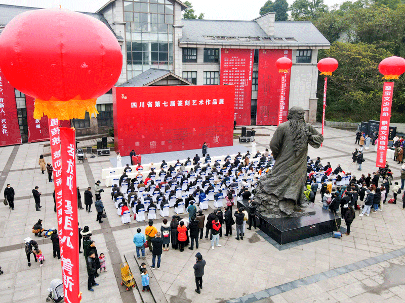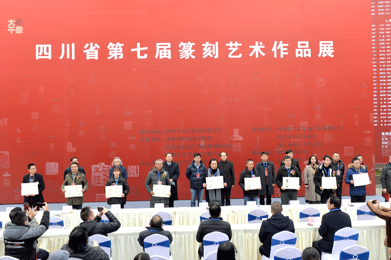 四川書法家網(wǎng)訊 12月18日,由四川省文學(xué)藝術(shù)界聯(lián)合會(huì)指導(dǎo),中共內(nèi)江市委宣傳部、內(nèi)江市文化廣播電視和旅游局、內(nèi)江市文學(xué)藝術(shù)界聯(lián)合會(huì)支持,四川省書法家協(xié)會(huì)主辦,四川省書法家協(xié)會(huì)篆刻委員會(huì)、內(nèi)江市書法家協(xié)會(huì)、內(nèi)江市張大千紀(jì)念館承辦,張大千美術(shù)館、張大千書畫院協(xié)辦的四川省第七屆篆刻藝術(shù)展在大千故里——內(nèi)江市張大千美術(shù)館廣場(chǎng)隆重開幕。